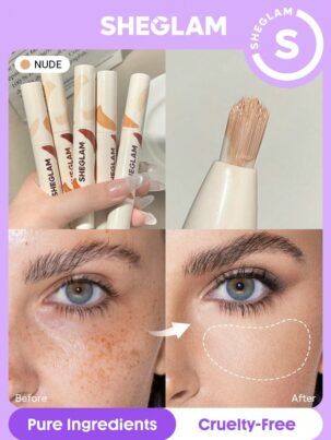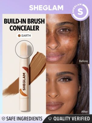 تصميم عملي بفرشاة مدمجة – سهولة في الاستخدام Sheglam Perfect Skin High Coverage Concealer