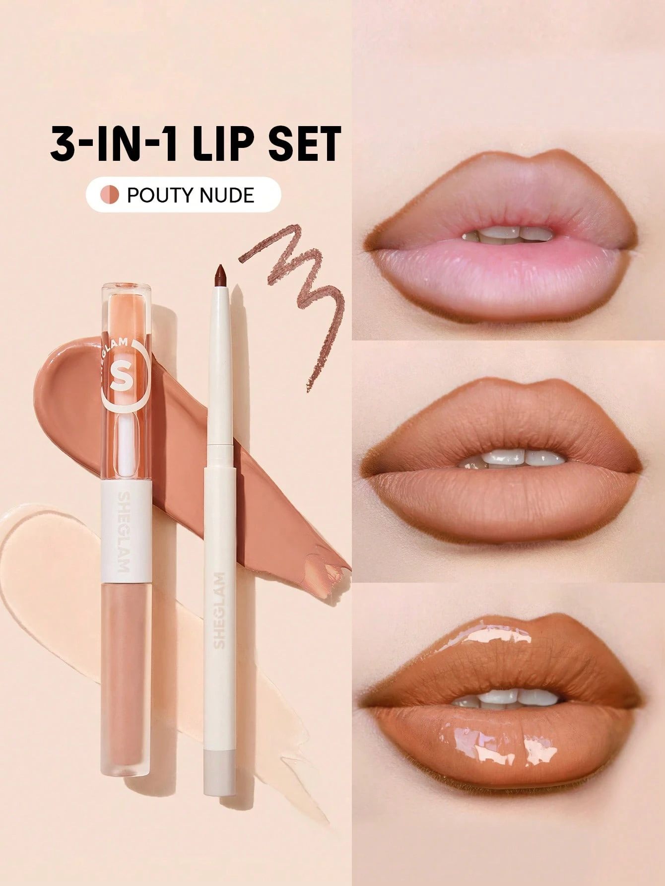 شيجلام مجموعة الشفاه 3 في 1 – سوفت جلام Sheglam Soft 90’s Glam 3 in 1 Lip Liner And Lip Duo Pouty Nude : سر الإطلالة الطبيعية الجذابة لكل بنت بتحب الجمال الناعم!