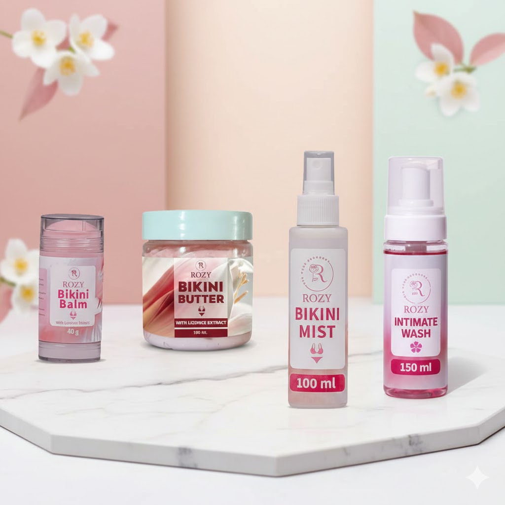 مجموعة روزي للبكيني: ميست + غسول + ستيك + زبدة 500 جم Rozy bikini mist +Rozy intimate wash +Rozy Bikini Stick+bikini butter 500GM مش مجرد منتجات عناية، دي فعلاً تجربة علاجية وجمالية متكاملة. المجموعة دي بتجمع بين التنظيف العميق، الترطيب المستمر، التفتيح الطبيعي، والانتعاش الفوري اللي بيخلي أي ست تحس بالراحة والثقة طول اليوم.