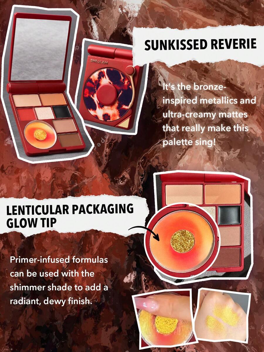 تحليل تفصيلي لألوان باليت سينثيا برونز SHEGLAM Vinyl Pop Color Palette-Sunkissed Reverie 9-Color Shimmer