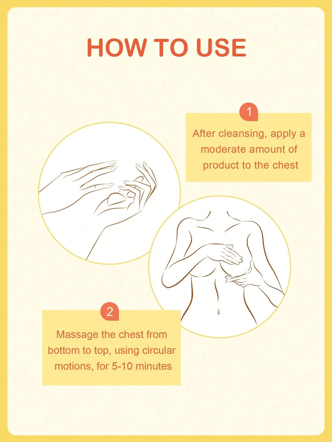 قبل الاستخدام، اغسلي منطقة الصدر بمياه دافئة ومنظف لطيف، وجففيها بمنشفة ناعمة.